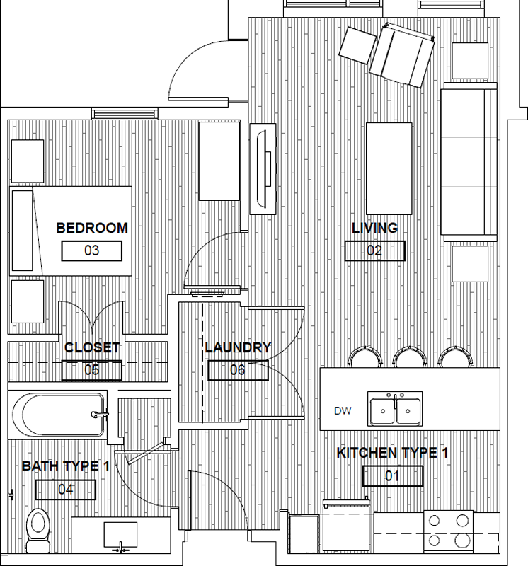 1A(a) - One Bedroom / One Bath - 646 Sq. Ft.*