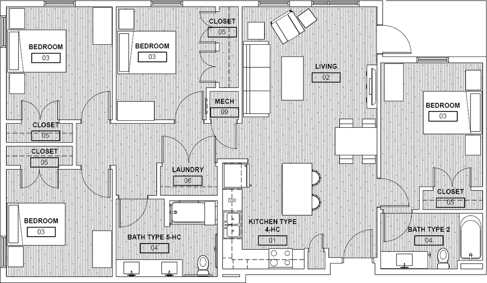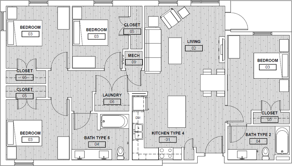 4B - Four Bedroom / Two Bath - 1427 Sq. Ft.*