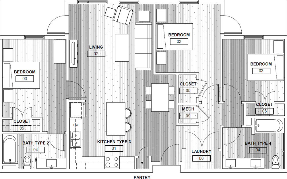 4B - Four Bedroom / Two Bath - 1,487 Sq. Ft.*